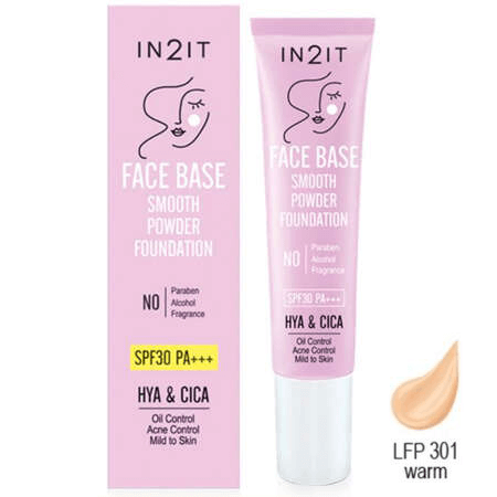 รองพื้นลิควิดเนื้อครีม เมื่อเกลี่ยจะกลายเป็นแป้ง (Liquid to Powder) ให้ลุคแมตท์เบาสบายตลอดวัน ทาทับได้โดยไม่เป็นคราบและไม่ก่อให้เกิดสิว ช่วยเติมร่องผิวให้เรียบ ปกป้องผิวจากมลภาวะ PM 2.5 พร้อมสารบำรุงผิว Korea Cica และ Sodium Hya